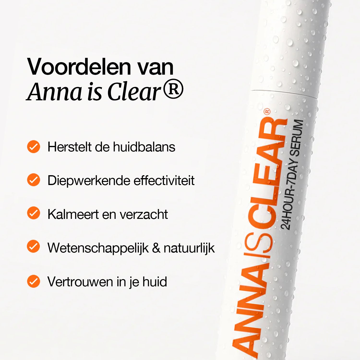 Anna is Clear® is een gepatenteerd serum dat zich specifiek richt op de oorzaak van puistjes: de bacterie Cutibacterium acnes. In tegenstelling tot agressieve acneproducten die je huidbarrière aantasten, werkt Anna is Clear® op een natuurlijke, huidvriendelijke manier.